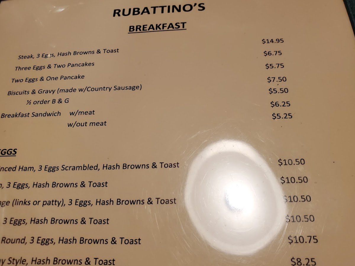 Rubattino's Restaurant Menu